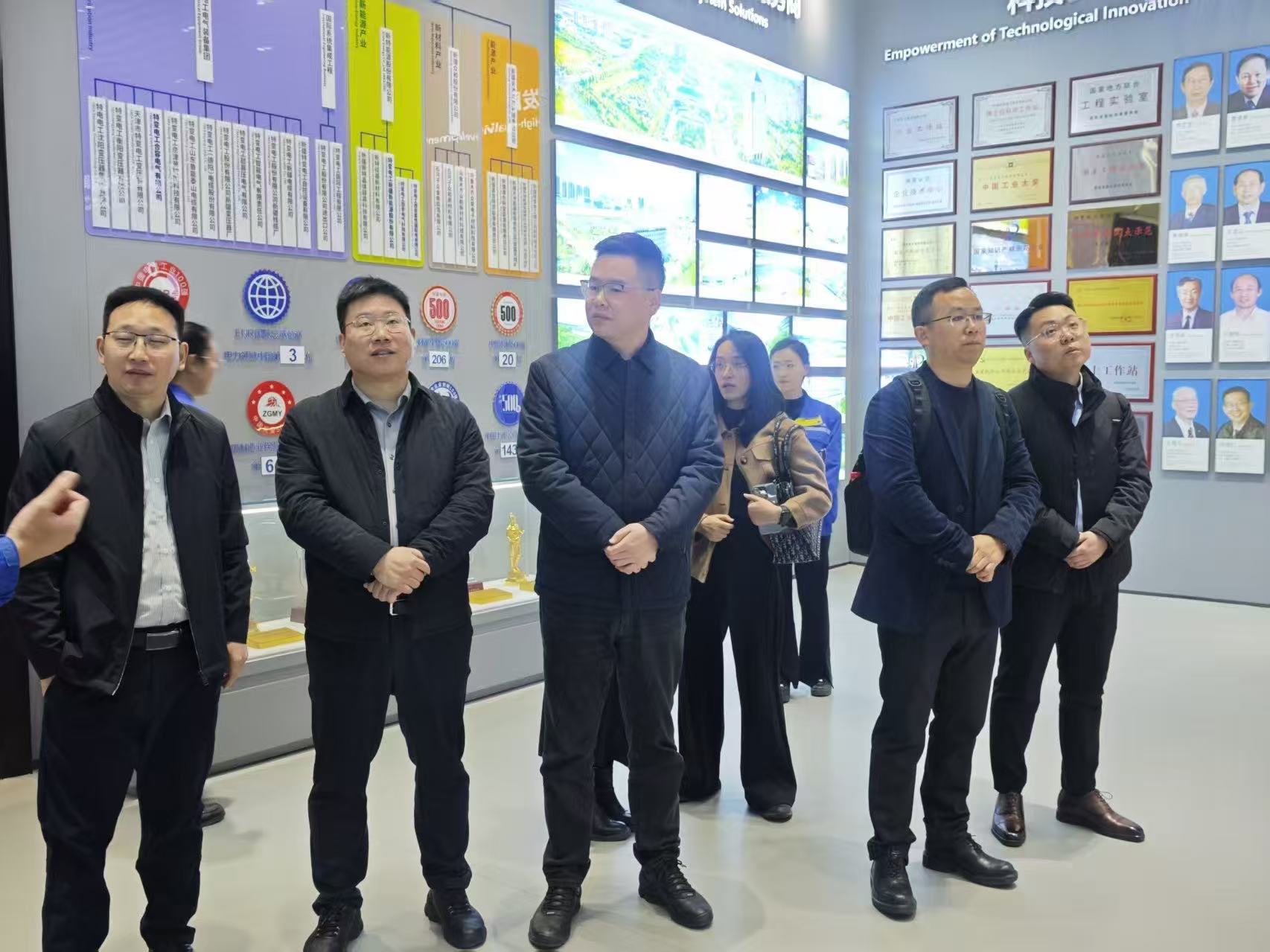 调研组首先参观特变电工西安产业园三期展厅,在工程技术研究院总经理常贤军等陪同下,通过实物陈列、动态沙盘与数字化演示系统,全面了解企业在光伏发电、智能风电、储能系统、智慧输变电等关键领域的技术布局与产业成果。参观过程中,双方围绕新能源装备制造、系统集成能力及碳中和解决方案进行现场交流,并就技术创新与产业化应用展开初步探讨。